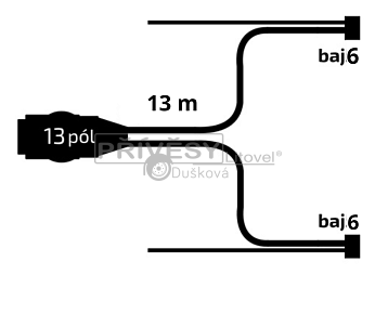 - celková délka kabeláže od vidlice po zadní konektory 13 m