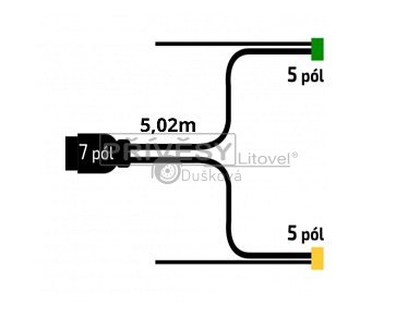 - Ze sedmipinové kovové zástrčky jsou vyvedeny dvě větve pětižilových kabelů 5x0,75 mm² (levá a pravá) o délce 5020 mm.