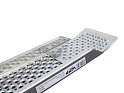 Obloukový hliníkový nájezd VAPP NHP-420 usnadňuje najíždění zařízení s menší světlostí. Prohnutý tvar zajišťuje plynulejší přechod nájezdu na ložnou plochu a umožňuje tak najetí i zařízením, která by na rovném nájezdu typu NH zachytávala spodkem. Díky nízké hmotnosti a vysoké pevnosti je praktickým pomocníkem při překonání výškových rozdílů různými vozíky a zařízeními.