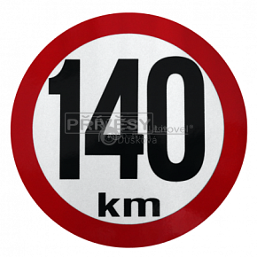 Samolepka průměr 150 mm s označením nejvyšší povolené rychlosti 140 km/h v provedení z retroreflexní fólie třídy 1 dle ČSN EN 12899-1, odpovídající platnému znění vyhlášky 341/2014 Sb. Označení nejvyšší povolené rychlosti o průměru 150 mm je přípustné použít dle vyhlášky všude, kde nelze umístit označení o průměru 200 mm. Výňatek z vyhlášky 341/2014 Sb. (Příloha 12, odstavec H))