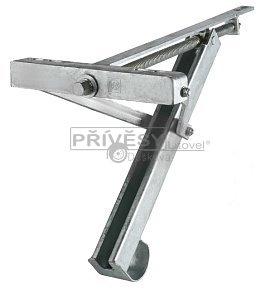 Výklopná opěrná noha ovládaná otáčením 19 mm šestihranu, vhodná pro karavany a prodejní stánky. Nosnost 1800 kg/4 nohy vyklopené na 45 stupňů.