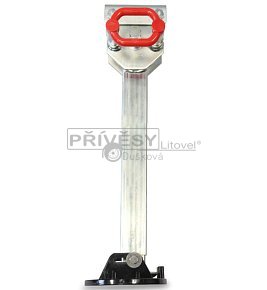 - Montáž na přívěs s koly pod ložnou plochou: Přiložený "U" profil lze přivařit na spodní vodorovnou plochu přívěsu (spodní část rámu). Poté se noha do profilu vešroubuje přiloženými šrouby. Alternativně lze provrtat horní stranu základny nohy a tu přišroubovat k rámu přímo, bez použití "U" profilu. Pro montáž je nutná světlá výška min. 650-600mm.