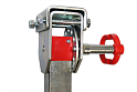 Opěrnou nohu lze sklopit po odjištění povytažením červeného madla. Nohu lze opět zaaretovat v poloze svislé, vodorovné (v obou směrech), anebo v některé ze čtyř mezipoloh v částečném sklonu. Pojistné madlo je vybaveno silnou pružinou, která brání samovolnému odjištění nohy za jízdy, nebo během podpírání přívěsu. Dále je noha vybavena šestihranem o šíři 19 mm. Pomocí kliky či goly s patřičným nástavcem lze šestihranem otáčet, a tím plynule vysunovat nebo zasunovat nohu, a to v rozsahu 23 cm.