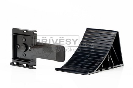 Plastový zakládací klín s držákem pro bezpečné zajištění přívěsu nebo automobilu při odstavení. Doporučené maximální zatížení zajišťovaného kola je 800 kg. Klín lze použít samostatně nebo spolu s držákem pro snadné uchycení klínu na rámu přívěsu nebo automobilu. Prodloužená plochá základna klínu umožňuje mírné najetí pneu na klín tak, aby byl klín stlačený k vozovce a nedocházelo k jeho posunu. nebo nechtěnému vysunutí z pod kola. Zakládací klíny patří k povinné výbavě brzděných přívěsů.