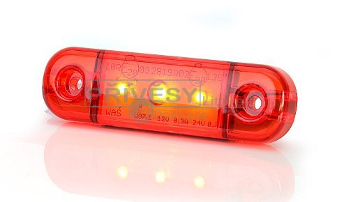 Zadní obrysová LED svítilna. Automaticky se přizpůsobí palubnímu napětí v rozmezí 12-24V.