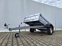 Masivní celosvařovaný rám podvozku se čtyřmi příčkami pod podlahou, sklopná korba, opěrné kolečko s držákem na příčce mezi ojemi, sklopné přední a zadní čelo, žárovková světla.