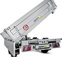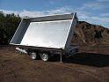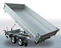 Třístranné sklápění korby, odnímatelné sklopné hliníkové bočnice 350 mm. Celosvařený spodní a horní rám. Provedení s "V" ojí, 13" kola, 13pólová elektroinstalace, podlaha je vyrobená z voděodolné překližky o síle 15 mm. Ruční ovládání hydrauliky, zadní čelo otevírací, přední čelo pevné.