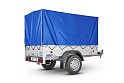 Tmavě modrá plachta s konstrukcí o ložné výšce 1,34 m a opěrné kolečko s držákem.