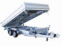Třístranné sklápění korby, odnímatelné sklopné hliníkové bočnice 350 mm, odnímatelné sloupky - lze vytvořit plato. Celosvařený spodní a horní rám.