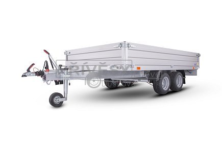 Provedení s "V" ojí, hliníkové bočnice 350 mm, 13" kola, 13pólová elektroinstalace, podlaha je vyrobena z voděodolné překližky o síle 15 mm. Bočnice jsou sklopné a odnímatelné včetně rohových sloupků - lze vytvořit plato.