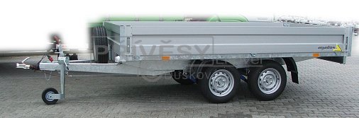 Provedení s "V" ojí, hliníkové bočnice 350 mm, 13" kola, 13pólová elektroinstalace, podlaha je vyrobená z voděodolné překližky o síle 15 mm. Bočnice jsou sklopné a odnímatelné, masivní celosvařený rám podvozku.