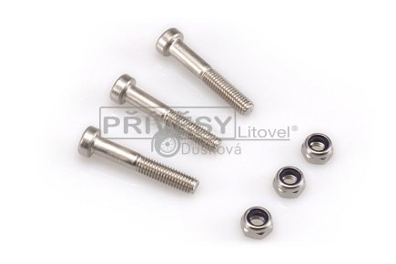 - Sada 3 ks nerezových šroubů s nízkou imbus hlavou a 3 ks samojistných nerezových matic pro uchycení autozásuvky tažného zařízení