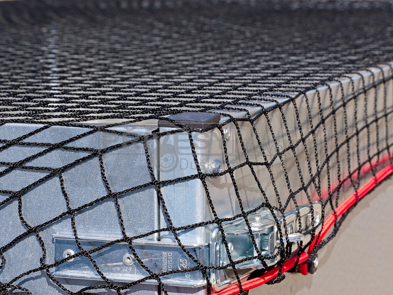 - Černá PE síťovina s oky 30x30 s obvodovým gumolanem pr. 6 mm v červené barvě pro snazší orientaci při nasazování.