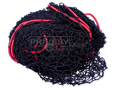- Černá PE síťovina s oky 30x30 s obvodovým gumolanem pr. 6 mm v červené barvě pro snazší orientaci při nasazování.