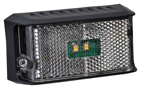 Přední obrysová svítilna s odrazkou v provedení LED. Černý ochranný kryt lze po odšroubování sejmout a pomocí dvou samořezných šroubků (do předvrtaných otvorů) připevnit na přívěs. Poté se svítilna opět přimontuje zpět do ochraného krytu.