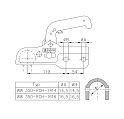 Litinová tažná spojka EM 350 R-CH je určena pro montáž na trubku o průměru 60 mm na přívěsy s maximální hmotností do 3500 kg. Vrtání montážních otvorů je 14,5 mm (tedy pro šrouby M14). Rozteč bočních montážních otvorů je 54 mm.Standardně je osazována na brzdy KNOTT KFG 35