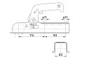 Standardní tažná spojka 800 kg pro nebrzděné přívěsy. Určená pro montáž na čtyřhan šíře 60 mm. Je vybavena praktickým držákem sedmipólové zástrčky. Ovládací madlo je opatřeno stiskací pojistkou a otvorem pro zámek WW DBS 8/AK7.