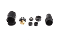 Zástrčka 13-pólová dle ISO 11446. Dodáváno se dvěma gumovými průchodkami (s vývodem pro jeden kabel, nebo s vývody pro dva kabely). Lze použít na elektroinstalace většiny přívěsů. Jednotlivé vodiče se k pinům připojují pomocí šroubků.