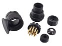 Zástrčka 13-pólová dle ISO 11446. V kompaktním zkráceném provedení. Dodáváno s jednou gumovou průchodkou. Lze použít na elektroinstalace většiny přívěsů. Jednotlivé vodiče se k pinům připojují pomocí šroubků.