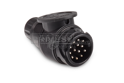 - Zástrčka je určena pro instalace s napětím 12V. I přesto, že se v ČR tato zásuvka ve značné míře používá také pro napětí 24V, není toto použití doporučeno proto, aby se vyloučila možnost připojení přívěsu za automobil s nevhodným napětím.