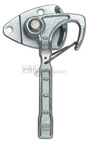 Pružinová pojistka drží hák závěru v uzavřeném stavu bezpečně zapadlý do protikusu. Před otevřením se pojistka otevře pouhým stisknutím - není potřeba vyndavat žádné závlačky a pojistky na řetízku, jako u jiných typů.